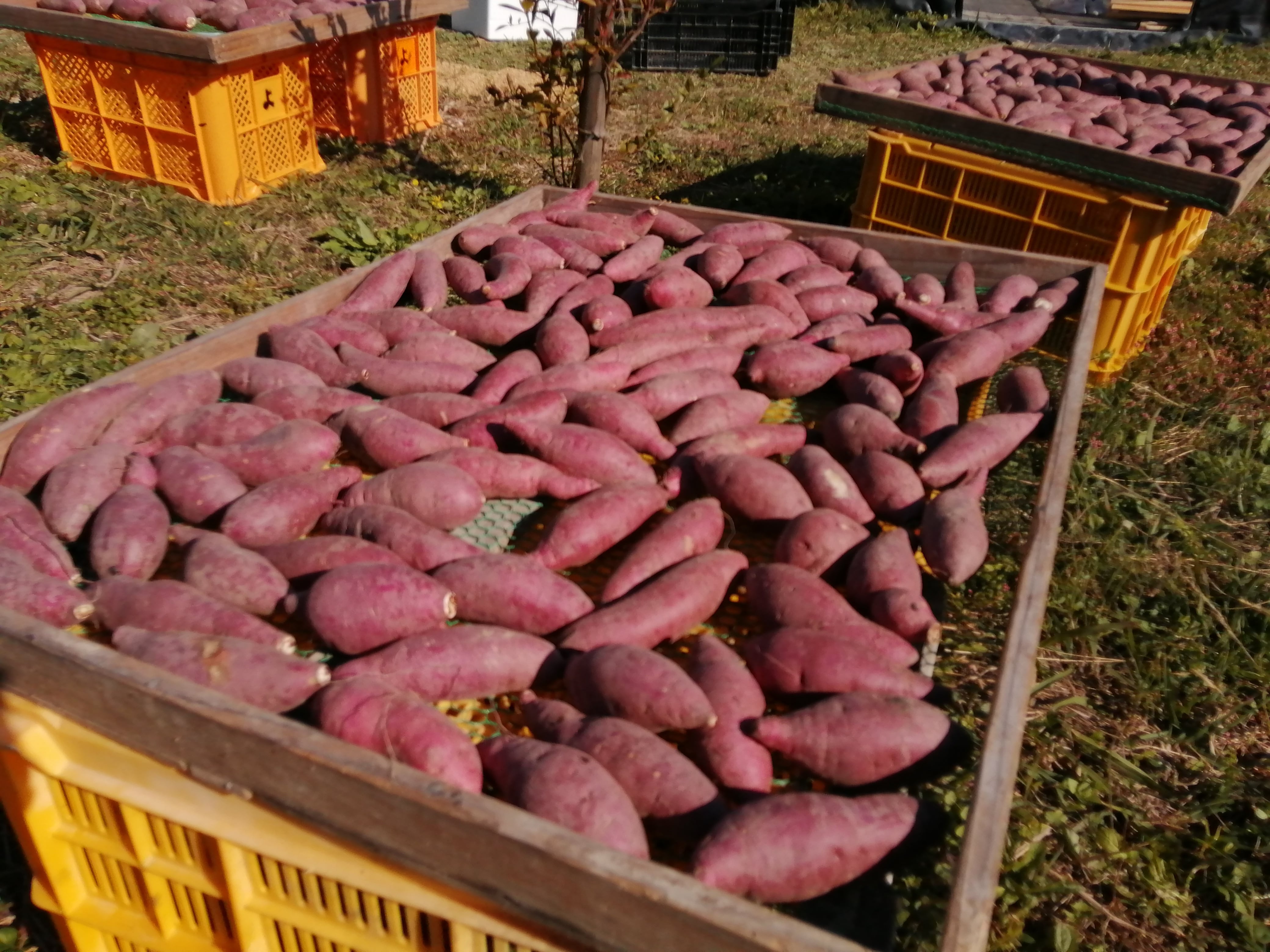 さつまいもは寒さに弱いので、ダンボールに入れて10℃以上の室内で保存。1〜2か月以上は保存できます。芽が出たら取り除いてお召し上がりください。