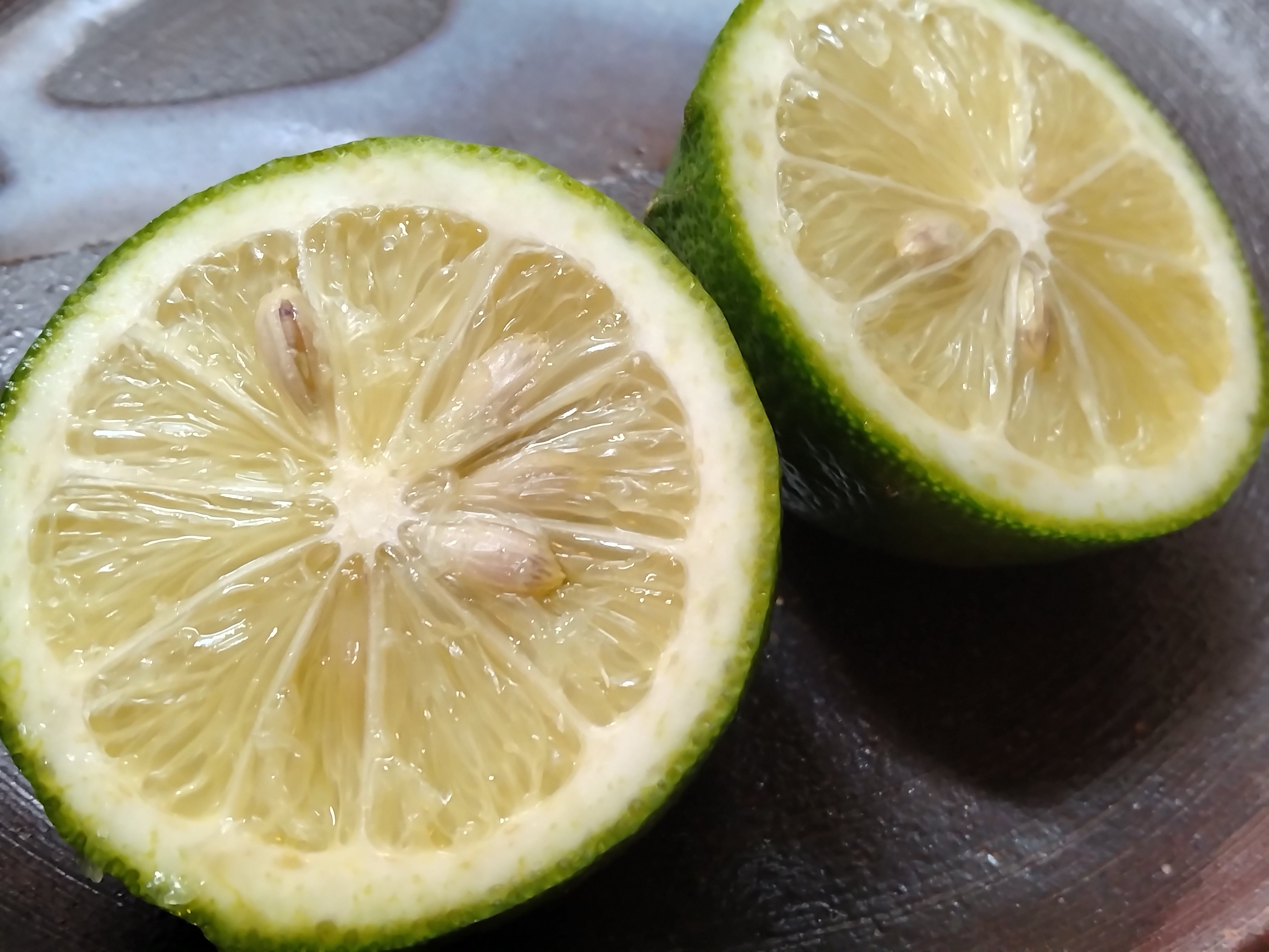 黄色の完熟レモンよりも果汁は少なく、酸味は強いですが、香りは抜群です。防腐剤・ワックスも不使用ですので、是非皮ごとお召し上がりください。