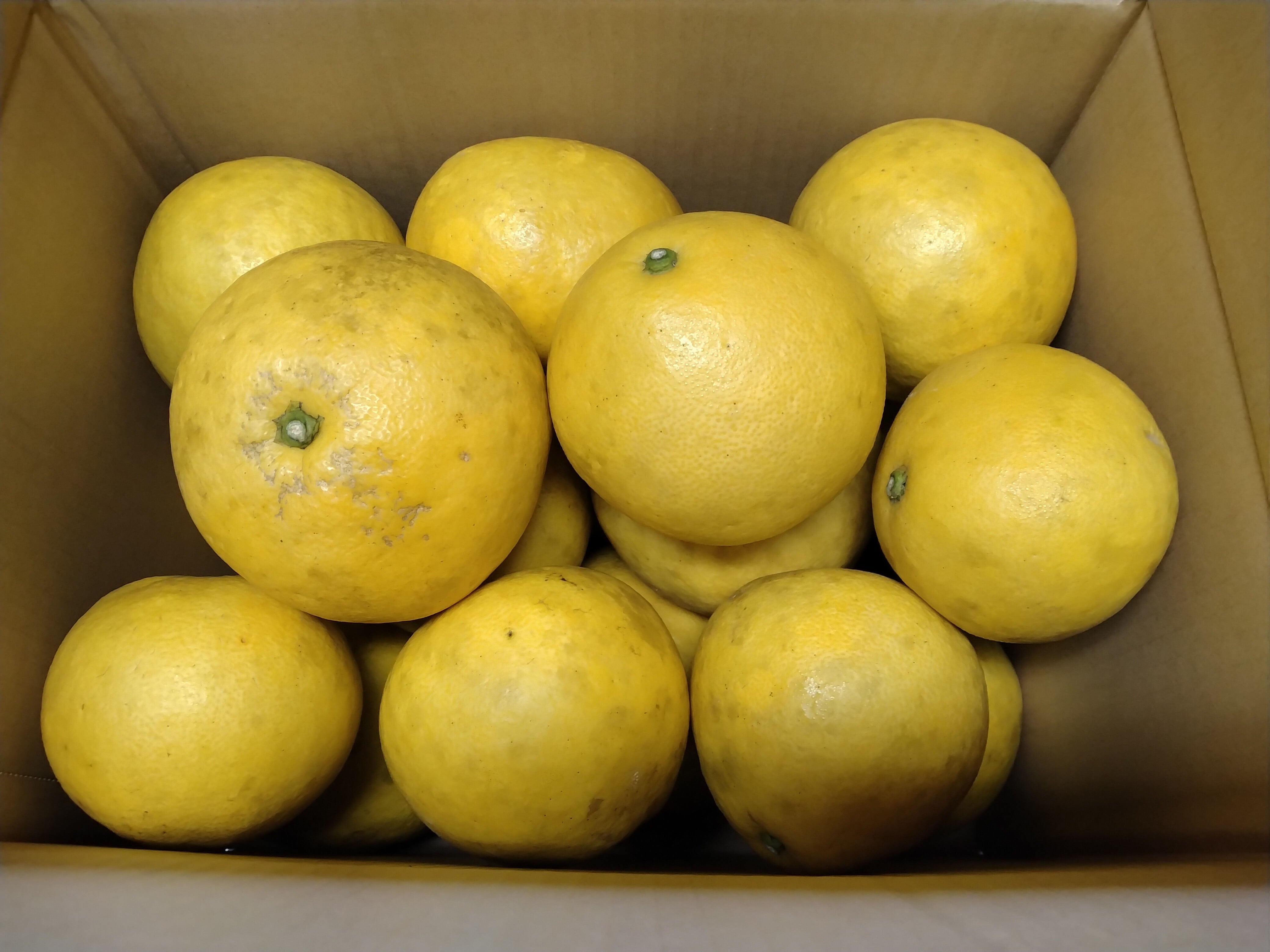 よりこんぼの文旦は、お野菜と同様、農薬・化学肥料・除草剤を使わずに育てています。皮には傷や黒点があるものもありますが、中身に問題はありません。また、防腐剤・ワックス等も使用しておりませんので、皮も安心してお使いいただけます。